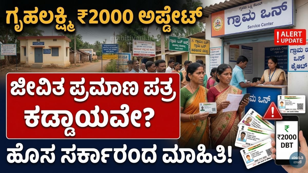 ₹2000 ಹಣ ನಿಲ್ಲದಿರಲು ಗೃಹಲಕ್ಷ್ಮಿಗೆ ಜೀವಿತ ಪ್ರಮಾಣ ಪತ್ರ ಕಡ್ಡಾಯವೇ? ಹೊಸ ಬೆಳವಣಿಗೆ ಏನು? ಮುಖ್ಯಾಂಶಗಳು (Highlights) ಗೃಹಲಕ್ಷ್ಮಿ (Gruha Lakshmi) ಯೋಜನೆಯ ₹2,000 ಡಿಬಿಟಿ (DBT) ನಿಲ್ಲದಂತೆ ಫಲಾನುಭವಿಗಳ ಪರಿಶೀಲನೆ ಕಠಿಣಗೊಳಿಸುವ ಚರ್ಚೆ ಸರ್ಕಾರದ ಮಟ್ಟದಲ್ಲಿ ನಡೆಯುತ್ತಿದೆ. ಈಗಾಗಲೇ ಯೋಜನೆ ಕುಟುಂಬದ ಯಜಮಾನಿ ಮಹಿಳೆಗೆ ತಿಂಗಳಿಗೆ ₹2,000 ನೀಡುತ್ತದೆ; ಆದರೆ “ಜೀವಿತ ಪ್ರಮಾಣ ಪತ್ರ” ಎಲ್ಲರಿಗೂ ಕಡ್ಡಾಯವಾಗಿದೆ ಎನ್ನುವ ಅಂತಿಮ ಅಧಿಕೃತ ಆದೇಶ ಸಾರ್ವಜನಿಕವಾಗಿ ಇನ್ನೂ ಸ್ಪಷ್ಟವಾಗಿ ಪ್ರಕಟವಾಗಿಲ್ಲ. ಮುಂದೆ ಹಣ ತಡವಾಗದಿರಲು ಆಧಾರ್-ಲಿಂಕ್ ಬ್ಯಾಂಕ್ … Read more